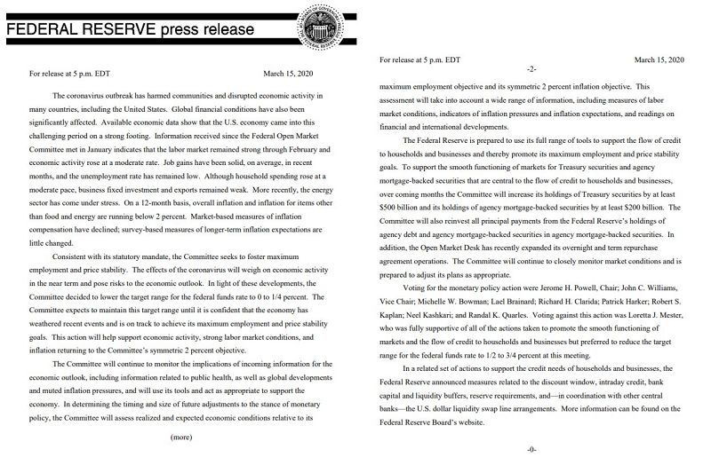美聯(lián)儲(chǔ)宣布降息后,10年期美國國債收益率下跌32個(gè)基點(diǎn),美股道瓊斯指數(shù)期貨和標(biāo)普500指數(shù)期貨雙雙大幅下跌,再次熔斷。北京時(shí)間上周,美股股指期貨因暴跌或暴漲已經(jīng)數(shù)次觸發(fā)交易限制,出現(xiàn)熔斷。分析人士認(rèn)為,投資者擔(dān)心美聯(lián)儲(chǔ)的緊急措施仍然無法對沖新冠肺炎疫情對美國經(jīng)濟(jì)的沖擊。