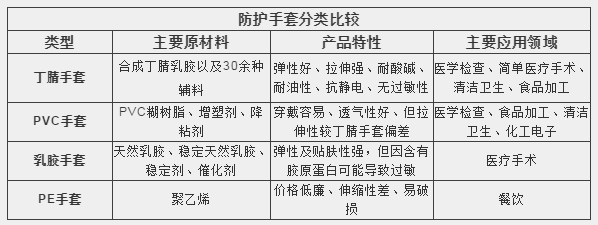 防護手套按照材質(zhì)不同可分為丁腈手套、PVC手套、乳膠手套和PE手套,根據(jù)品質(zhì)等級和用途可分為醫(yī)療級和非醫(yī)療級,醫(yī)療級手套是指需要滿足目標國家醫(yī)療市場質(zhì)量認證體系或準入標準的產(chǎn)品,主要用于醫(yī)療手術(shù)、醫(yī)療檢查、醫(yī)療護理等領(lǐng)域。