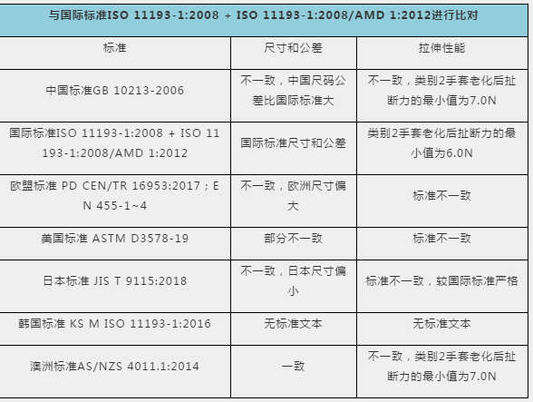 1、一次性使用醫(yī)用橡膠檢查手套國內(nèi)外標準比對