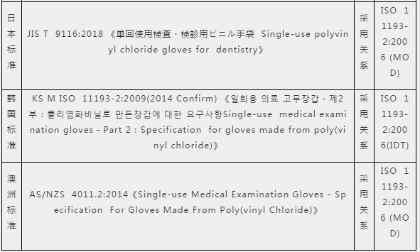3、一次性使用醫(yī)用聚氯乙烯檢查手套國內(nèi)外標準比對