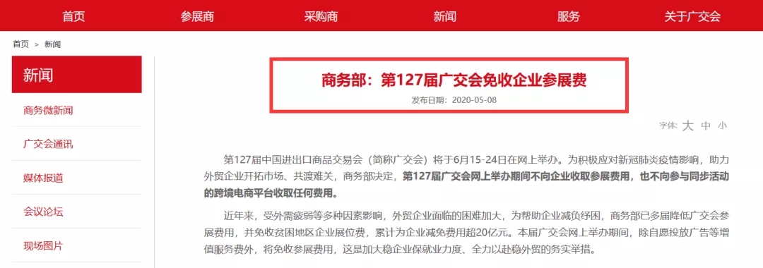 另,廣交會(huì)網(wǎng)站也已于5月8日同步更新消息: