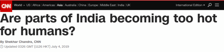 據(jù)美國有線電視新聞網(wǎng)(CNN)7月4日報(bào)道,今年夏天,受高溫天氣影響,印度已有100多人死亡。未來幾年內(nèi),情況可能會(huì)進(jìn)一步惡化。CNN稱,這可能會(huì)造成人道主義危機(jī),因?yàn)橛《却蟛糠值貐^(qū)可能會(huì)因?yàn)檫^熱而不適宜居住。