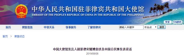 8月8日,中國駐菲律賓大使館亦發(fā)出公告,提醒在菲中國公民“遠離賭場,潔身自好,不要參與和從事賭博或網(wǎng)絡(luò)博彩等涉及違法和可能危及自身安全的活動”。