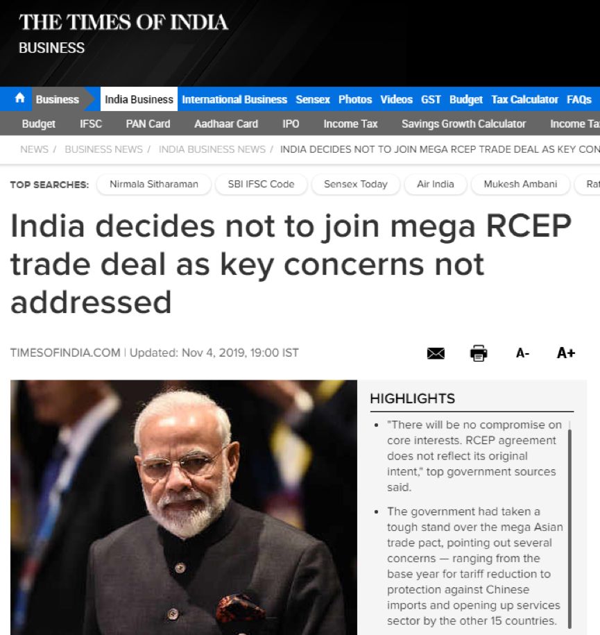 印度很怕加入RCEP會(huì)沖擊國(guó)內(nèi)制造業(yè),尤其擔(dān)心中國(guó)廉價(jià)商品的涌入。它希望RCEP的自由貿(mào)易程度低一些,給印度更多照顧。但是RCEP其他談判國(guó)之間的貿(mào)易便利化程度已經(jīng)很高,如果過(guò)度照顧印度的要求,RCEP就起不到提升整個(gè)地區(qū)自由貿(mào)易水平的作用,等于失去了意義。