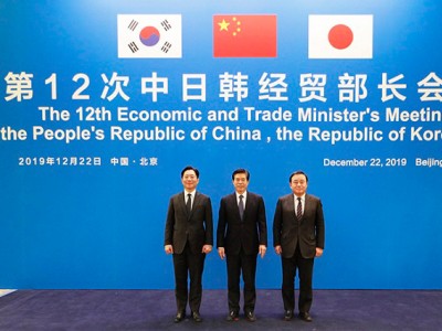 第12次中日韓經貿部長會議12月22日在北京舉行,中國商務部部長鐘山同韓國產業(yè)通商資源部長官成允模、日本經濟產業(yè)大臣梶山弘志共同主持會議。