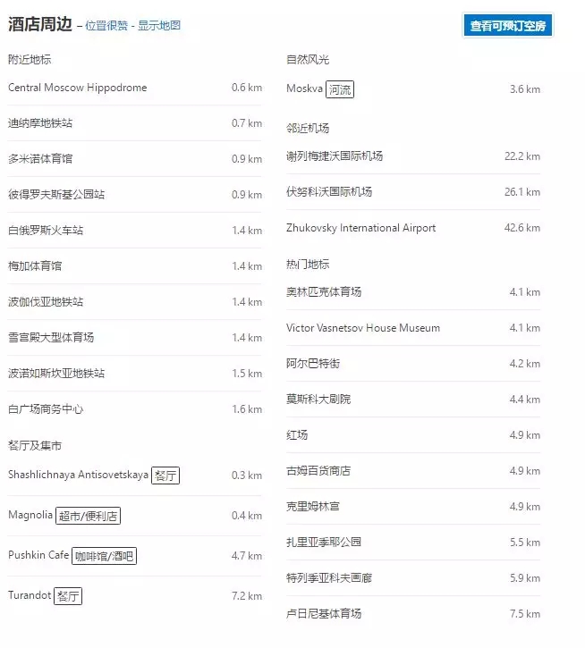 酒店提供前往Okhotny Ryad Metro Station地鐵站的免費(fèi)班車服務(wù),距離紅場(Red Square)有一段很短的車程,距離Belorussky Train Station火車站2公里。客人從該火車站搭乘機(jī)場特快列車(Aeroexpress Train),僅需35分鐘即可抵達(dá)Sheremetyevo International Airport國際機(jī)場。