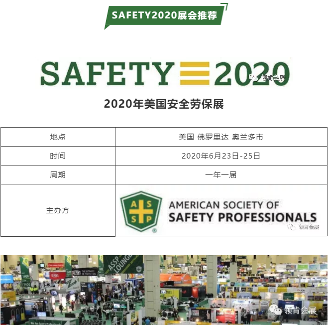 美國安全勞保展(SAFETY 2019)由ASSP (The American Society of Safety Professionals)美國安全專家學(xué)會主辦,是美國安全防護及個人防護領(lǐng)域最重要、最專業(yè)的展會之一,至今已經(jīng)有五十年的歷史。每年的ASSP年會都吸引著來自各個工業(yè)領(lǐng)域的領(lǐng)導(dǎo)者,SAFETY是ASSP在全球范圍內(nèi)注冊的展會品牌,是全球唯一以safey為名字和主題的展覽會。