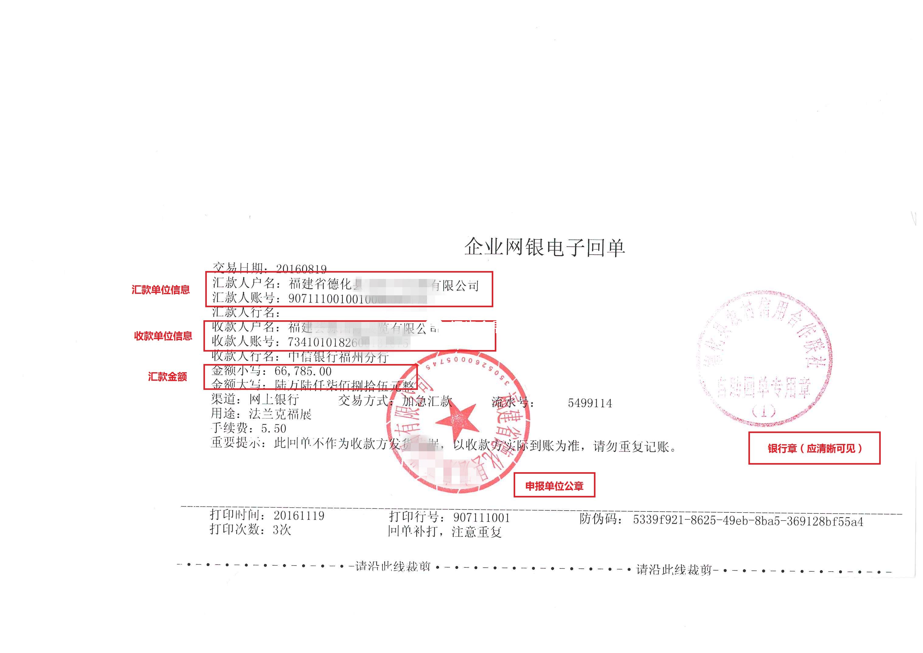 *境內(nèi)銀行匯款回單 | 查看樣例 |